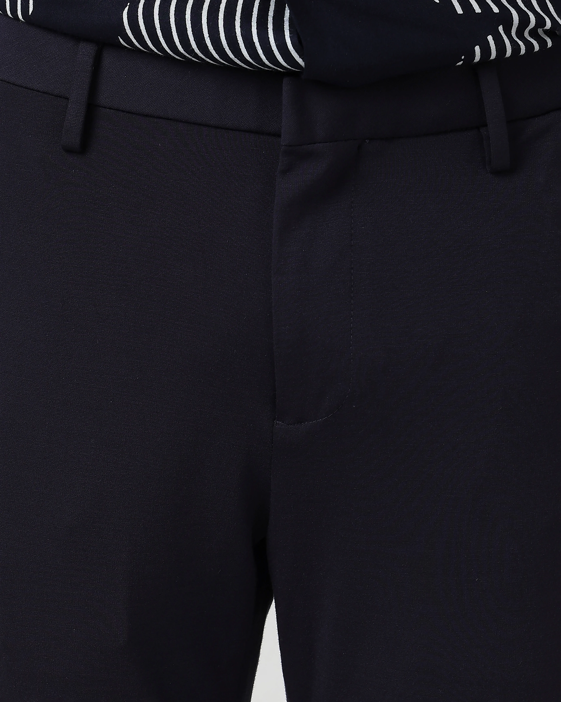 Classic Versatile Soft Slim-Fit Straight-Leg Navy Trousers 274156